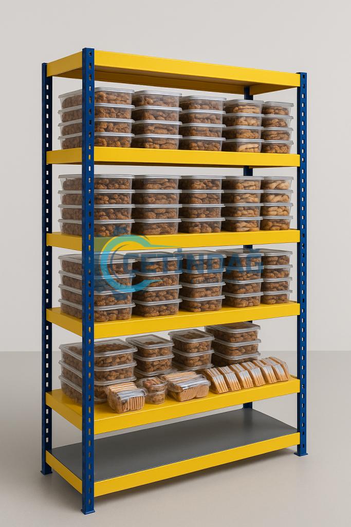 İhtiyaca göre özel ölçü, renk ve raf kalınlığı seçenekleriyle projeye özel depo raf çözümleri üretilir.